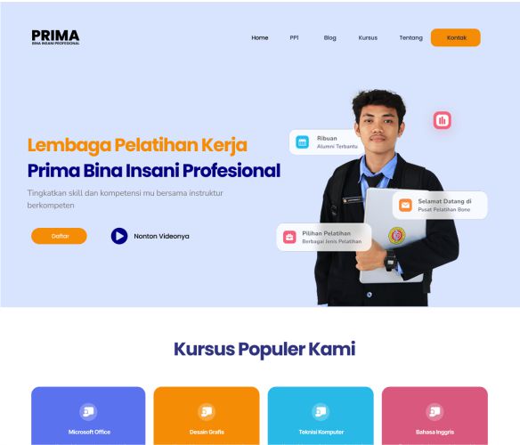 Prima Bina Insani Professional required a digital platform to strengthen its presence and accessibility. The vision was to create a website that goes beyond a simple brochure — becoming a hub where visitors can explore courses, training opportunities, and institutional values.