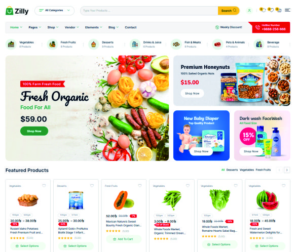 The website Zilly.com is developed using WordPress as a flexible and scalable platform to support a modern food marketplace.