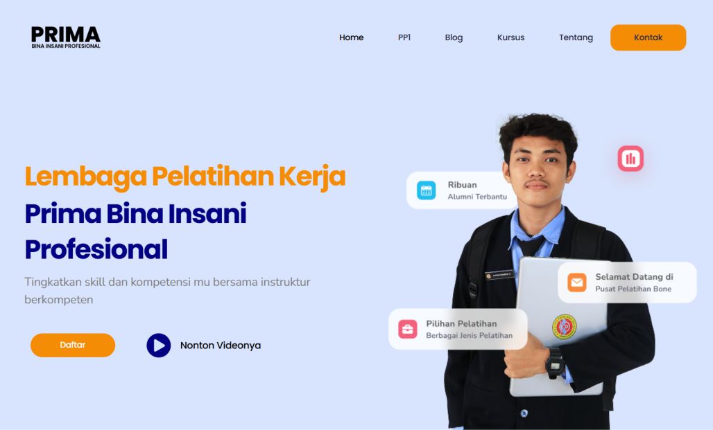 Prima Bina Insani Professional required a digital platform to strengthen its presence and accessibility. The vision was to create a website that goes beyond a simple brochure — becoming a hub where visitors can explore courses, training opportunities, and institutional values.